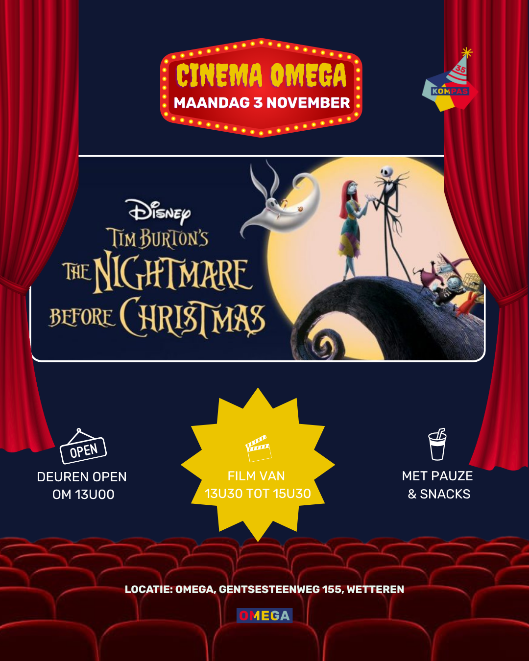 🎬 Kom op maandag 3 november naar Cinema Omega voor de film Tim Burton’s The Nightmare Before Christmas!